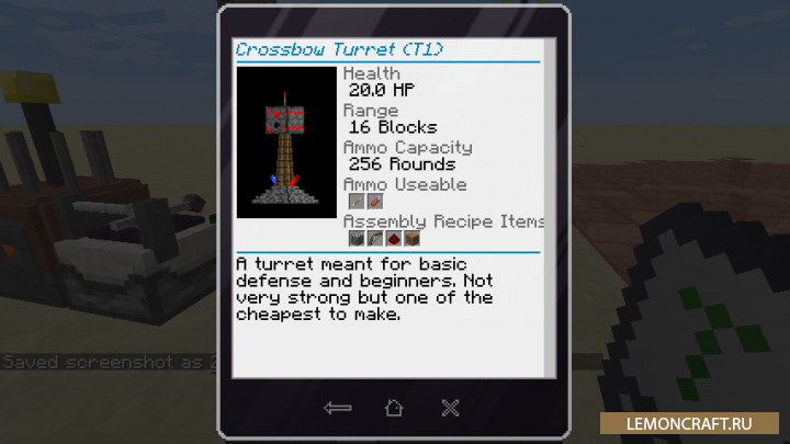 Мод Turret Mod Rebirth позволит установить в игре большое количество новых турелей. Теперь любую постройку в игре можно сделать неприступной крепостью. Мобам будет проблематично пробиться к вашему строению, что, в свою очередь, придаст игре свою изюминку. С турелями можно производить различные действия. Можно их сломать, потом отремонтировать, перенести в другое место, улучшить их показатели и многое другое.
